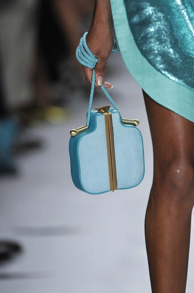 As bolsas retomam o fA?lego, o formato geomAi??trico foi o grande hit dos desfiles, elas apareceram em couro, com pedrarias, de palha e atAi?? de renda. Os modelos sA?o, em sua maioria, quadrados e retangulares, levados na mA?o ou a tiracolo.