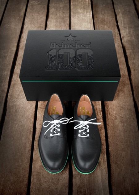 Os sapatos foram feito na Inglaterra e foram feitos para a campanha “Heineken 100” que destaca “Homens do Mundo“, uma espAi??cie de projeto que incentiva a inovaAi??A?o cultural, ou melhor a evoluAi??A?o cultural do homem de um modo geral, visto que a sociedade estA? estagnada em uma mAi??dia pobre de cultura e rica de bobagens.
