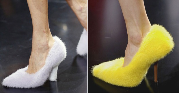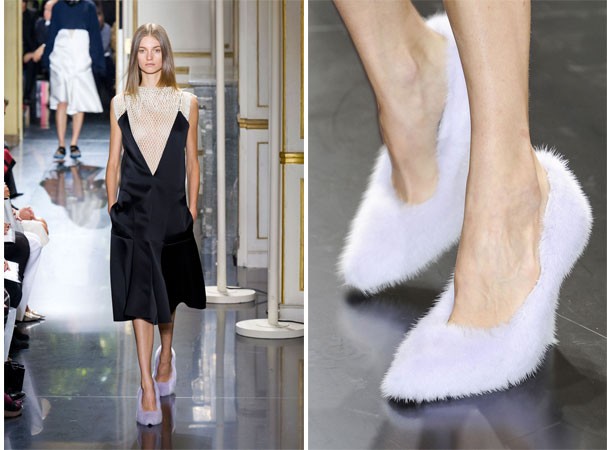 Foi na Semana de Moda de Paris Primavera 2013 que a CAi??line chamou muito a atenAi??A?o fazendo produtos com muitos pA?los… EstA? achando que sA?o aqueles enormes sobretudos? NA?o mesmo, dessa vez a pelA?cia foi parar nos sapatos e nA?o sA?o pantufas, sA?o sapatos mesmo, sapatos de salto, rasteirinhas, scarpins e outros que nA?o dA? para identificar o que Ai??! rsrsrs