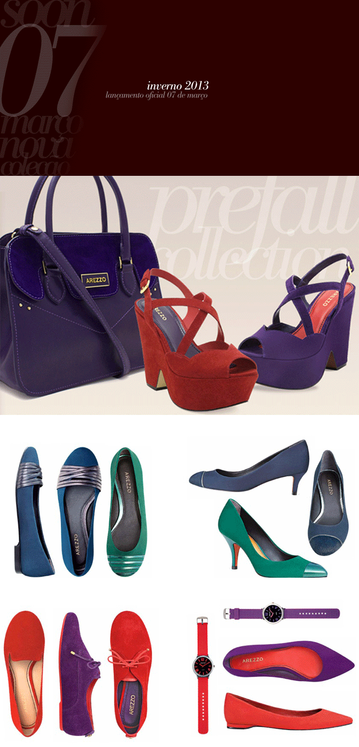 A Arezzo clorfenamina. lanAi??a sua coleAi??A?o de prefall (preview de inverno) em grande estilo nesta quinta-feira, 7 de marAi??o. Como era de se esperar, a coleAi??A?o estA? incrAi??vel, mesclando as principais tendA?ncias da temporada e inovando na cartela de cores, deixando o inverno super colorido. Os Ai??metalizados continuam em alta, a marca incluiu o vinil transparente misturado a outros materiais, aplicaAi??Ai??es de pedrarias e taxas, bordados remetendo ao barroco, franjas, animal print em shapes modernos, botinhas em sua maioria de cano mAi??dio e baixo fazem parte desta coleAi??A?o que ficou super democrA?tica.