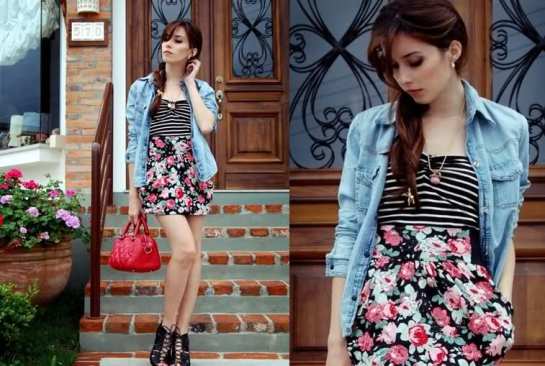 Pra deixar a produAi??A?o ainda mais atual, combine as listras P&B com floral em um mesmo look!