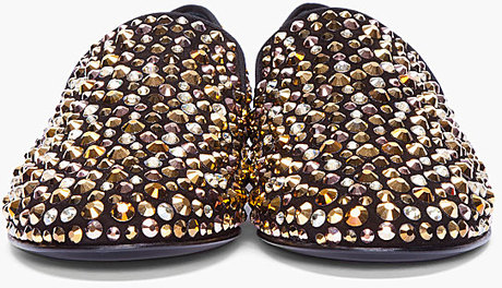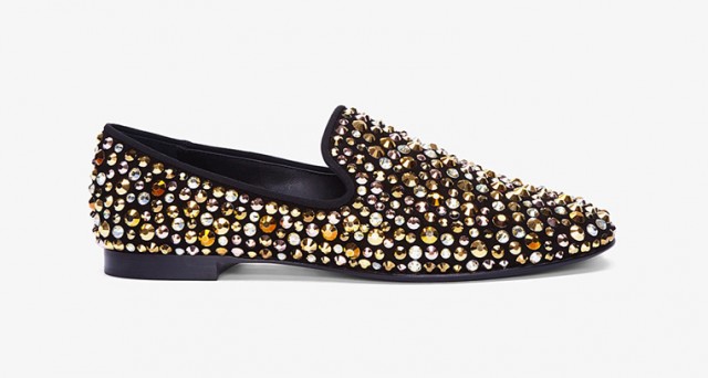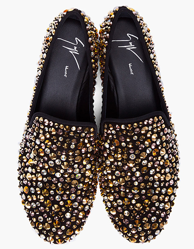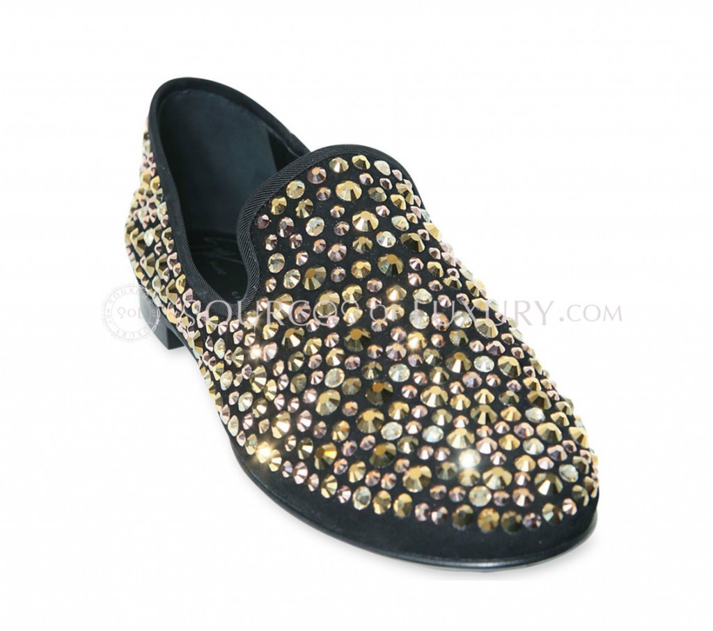 Giuseppe Zanotti voltou com tudo ao lanAi??ar mais um slipper, mas nA?o pensem que Ai?? um slipper comum e com alguns recortes, Zanotti fechou parceria com a empresa de cristais mais famosa no mundo da moda, a Swarovski. Giuseppe Zanotti nA?o poupou cristais ao lanAi??ar oAi??Gold Swarovski Crystal Kevin Loafers que Ai?? interinho cravejado nos cristais mais puros do mundo.