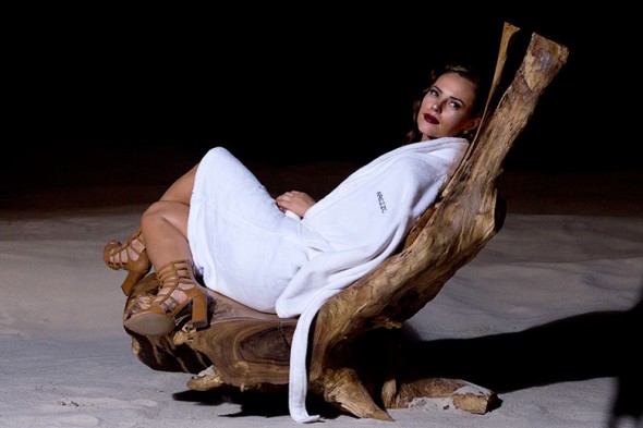 Em poses quentes e sexy, Paolla posou em um cenA?rio que lembra uma praia com mA?veis naturais do designer Hugo FranAi??a.Ai??ai???Paolla Ai?? linda, tem uma beleza poderosa, hipnA?tica. O cenA?rio surreal praiano completa o mood sexy, com leveza e romantismoai???, afirmou Giovanni Bianco, diretor criativo da Arezzo.Ai??